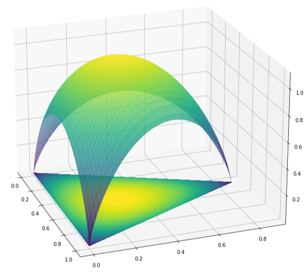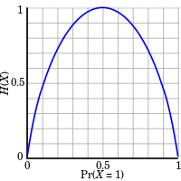 이면 $H(X) = -p\log p - (1-p) \log(1-p)$이다. 그래프를 그리면 아래와 같다.